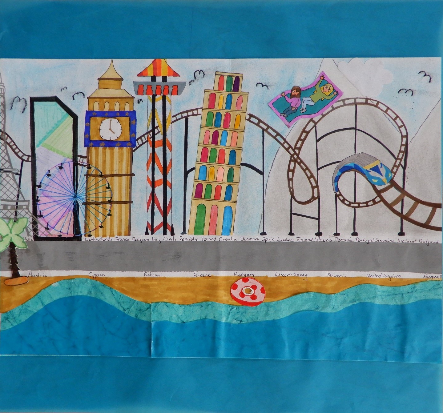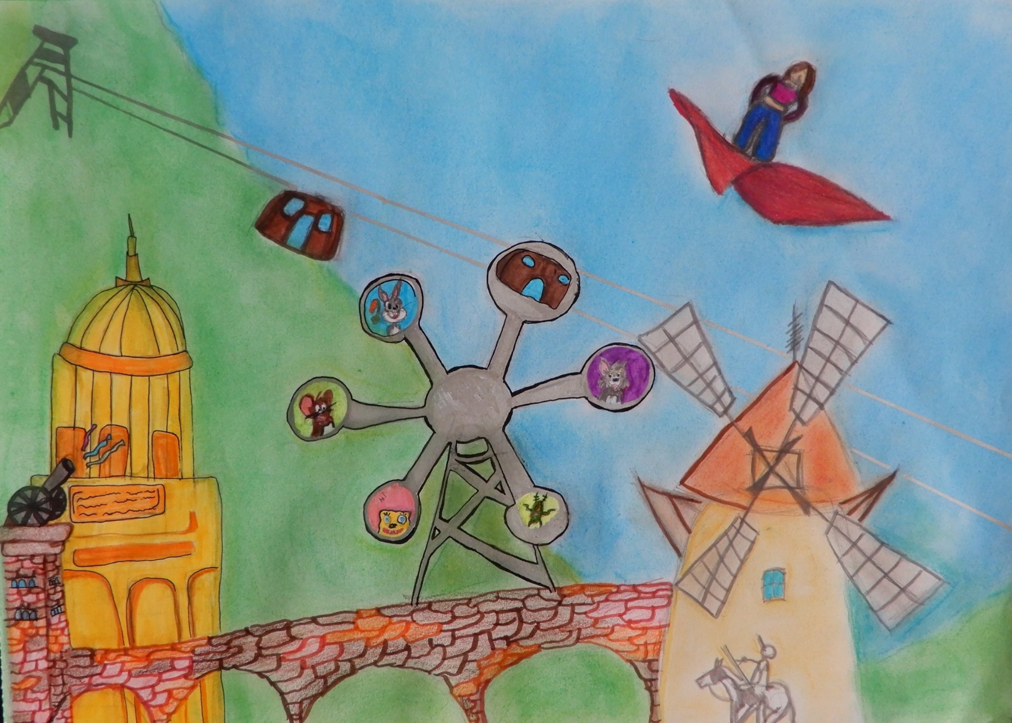 Die Klassen 6 bis 7 wählten entweder aus Modul 2 das Thema „Reise durch Europa“, wobei sie mit Freunden auf einem fliegenden Teppich Landesgrenzen überqueren und gemeinsame Erlebnisse in Europa haben oder sie entschieden sich für das Thema „Fabelhaft“ und konnten eine eigene Fabel oder ein europäisches Fabelwesen kreieren und die verschwimmenden Grenzen zwischen Menschen, Tieren, Pflanzen und Dingen darstellen.