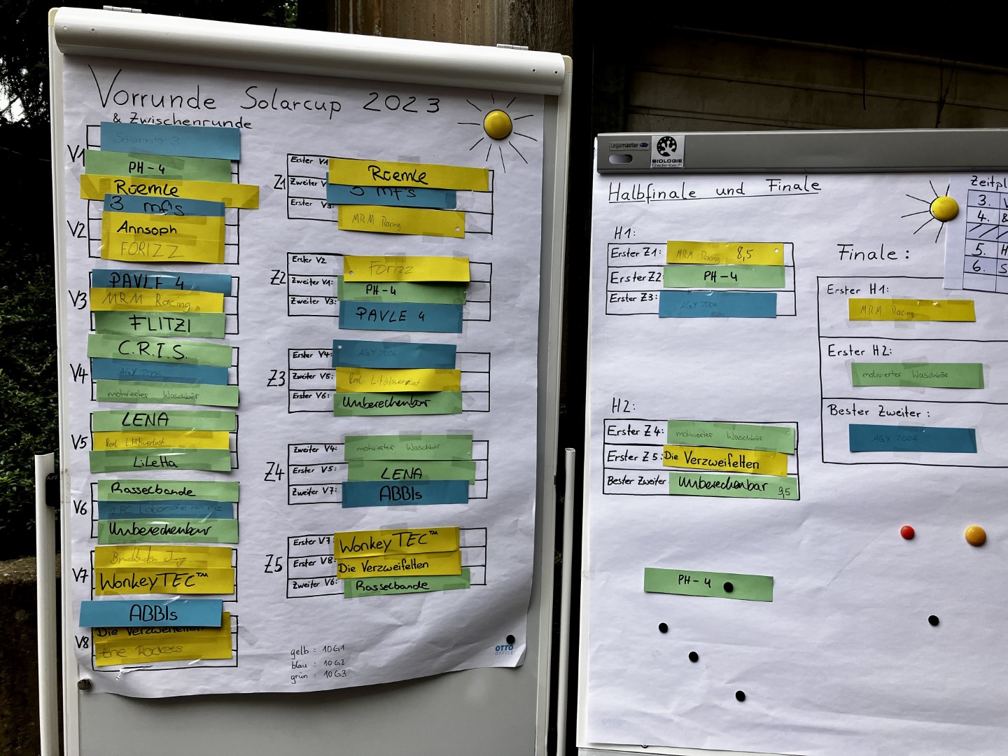 Beim SolarCup erleben Schülerinnen und Schüler die Anwendung von Technik mit Sonnenenergie kombiniert mit viel Spaß und Teamgeist. Im Rahmen des Physikunterrichts haben Jochen Mankel-Pfeiffer und Christian Michel ihre Klassen an das Thema Solarenergie herangeführt. Dabei stehen Energieeffizienz und Nachhaltigkeit im Mittelpunkt des Projekts. Am Freitag, den 14. Juli 2023, stand der Abschluss des Projekts an: Die solarangetriebenen Modellfahrzeuge wurden zuvor im Unterricht in Teams zusammengebaut und traten dann beim SolarCup gegeneinander an. Nach acht Vorrunden, dem Halbfinale und dem Finale stand das diesjährige Siegerfahrzeug fest: „MRM-Racing“ aus der Klasse 10G1, sie konnten die Energie der Sonne am besten nutzen und ließen den „motivierten Waschbären (10G3) auf dem zweiten und „AGY 2006“ (10G2) auf dem dritten Platz zurück.