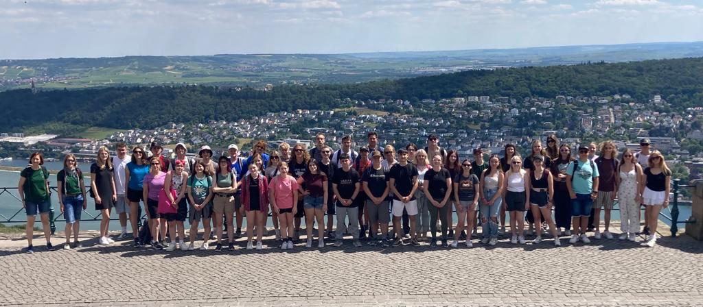 Die drei Monate danach vergingen schnell und schon waren wir diejenigen, die unsere Austauschpartnerinnen und Austauschpartner vom Bus in Gladenbach abholten. Obwohl wir diesmal bei uns Zuhause wohnten und keine fremden Städte besuchten, war der zweite Teil des Austauschs nicht weniger spannend. Wir haben uns alle gefreut, die Amerikaner wieder zu sehen und auch für unsere Eltern war es sehr spannend, sie kennenzulernen. Als sie angekommen waren, begann gerade ein langes Wochenende, das hieß viel Zeit für Ausflüge und Unternehmungen mit der Familie oder den anderen Teilnehmerinnen und Teilnehmer. Neben einem gemeinsamen Grillabend mit den Eltern fuhren viele in Städte wie Frankfurt oder Köln, manche machten auch weitere Fahrten nach Luxemburg oder Frankreich. Die alten Häuser in den deutschen Städten waren für viele Amerikanerinnen und Amerikaner besonders interessant, deswegen wurden auch zahlreiche Schlösser und Kirchen besichtigt. Nach dem Wochenende kamen unsere Austauschpartnerinnen und Austauschpartner mit in die Schule und am Mittwoch machten wir alle zusammen einen Ausflug an den Rhein. Dort erlebten wir eine Bootsfahrt, fuhren mit einer Seilbahn und sahen uns Rüdesheim an. Wegen des warmen Wetters waren wir in dieser Woche öfters im Freibad oder am See schwimmen und auch Tretboot fahren auf der Lahn war beliebt.